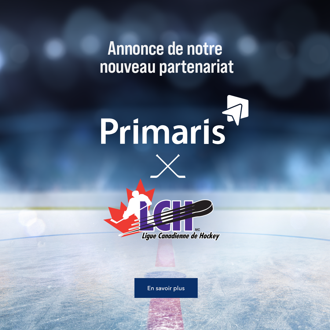 Nous faisons équipe avec la LCH ! Primaris et Place du Royaume sont fiers d’annoncer leur partenariat avec la Ligue canadienne de hockey.